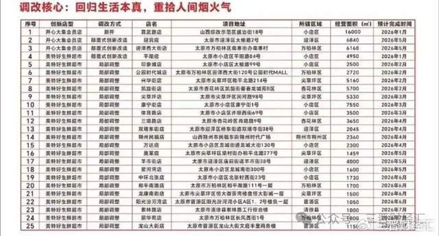 为缓解困境,11月4日美特好再发公告,宣布启动25门店新开及升级调改计划。改造工作预计于2026年1月至7月陆续完成,经营面积从1150平方米至16000平方米不等。