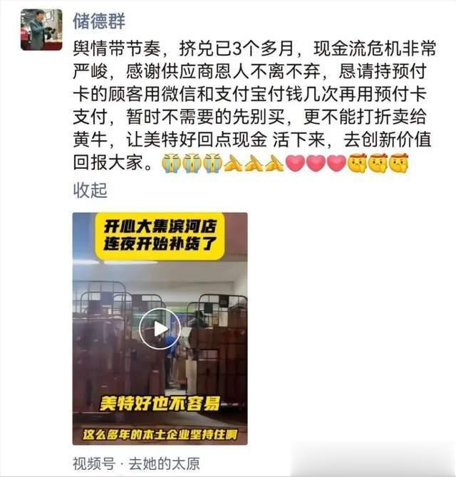 储德群称,办企业还是活在现金流里。如果每天进来的都是储值卡,那现金流就断了。房租、水电、员工工资、税、社保、供应商货款等,都需要现金。美特好一直扛到今天,确实非常难。